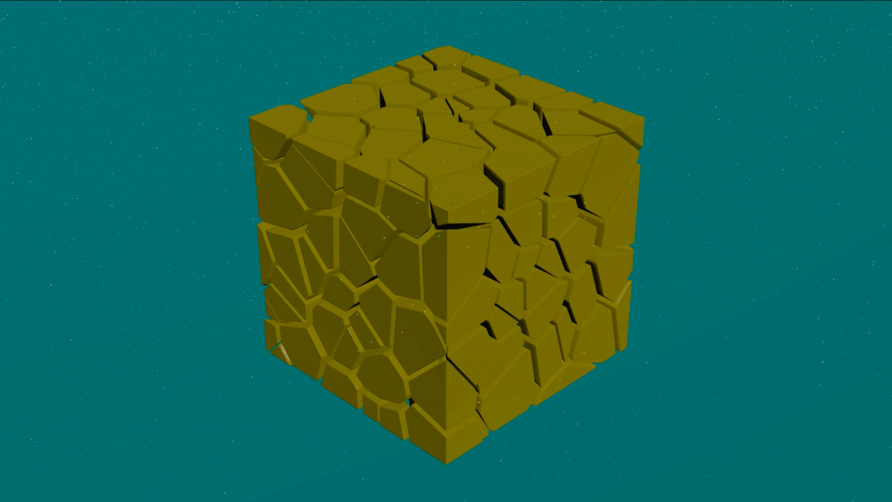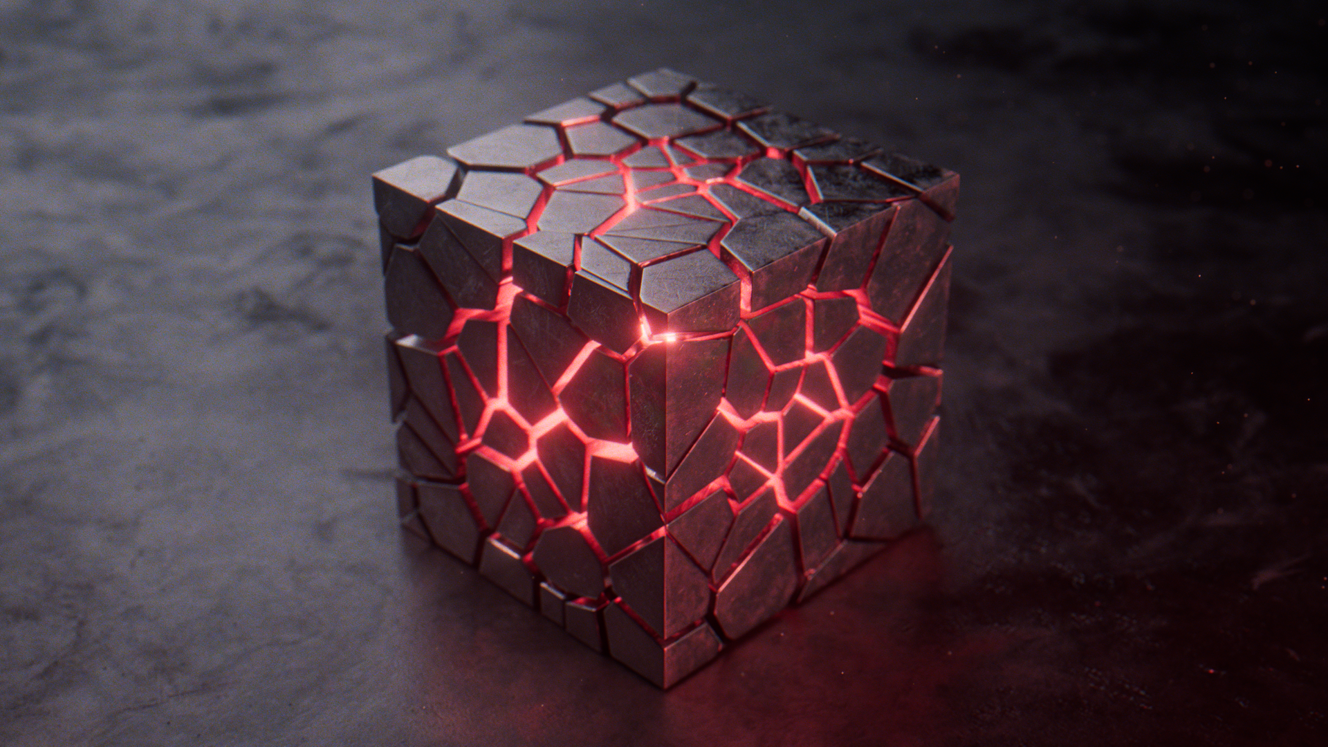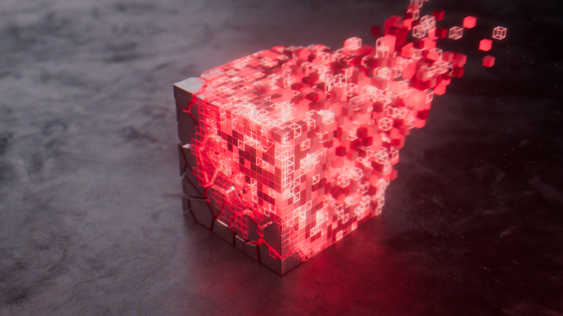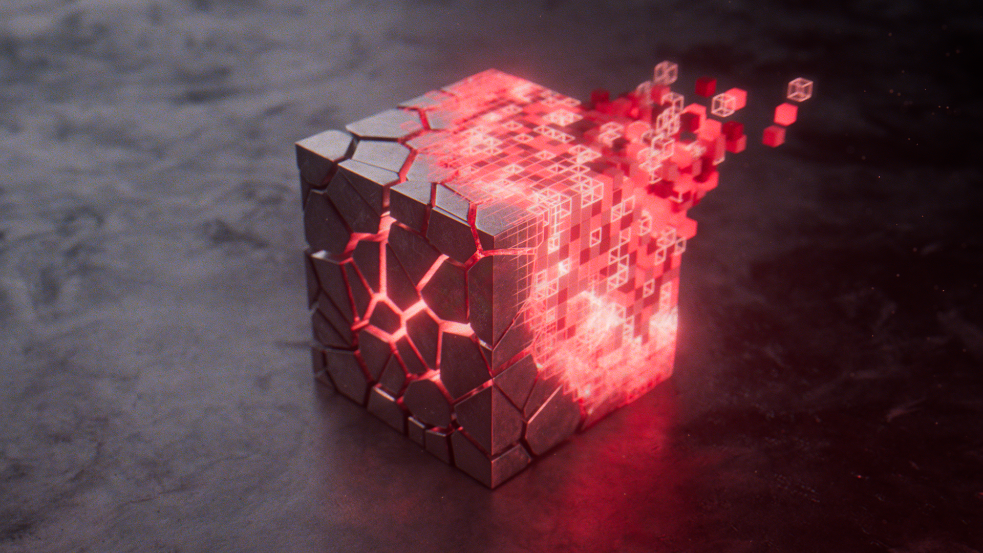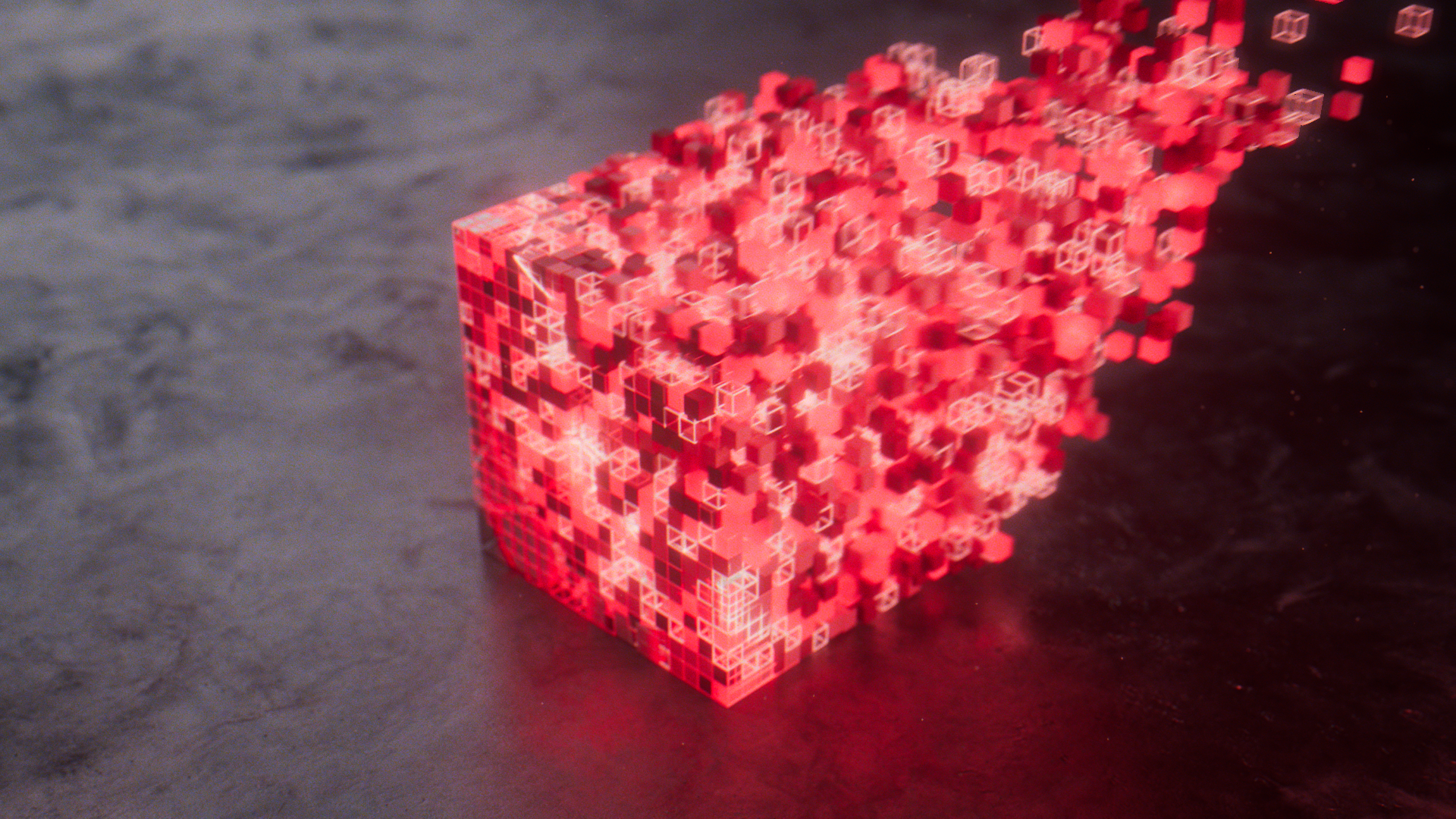 Inspired by the digital aesthetics of films like Pixels, this series investigates the systematic disintegration of geometric forms. The goal was to build a system where solid objects break down into thousands of cubic units, simulating a collapse of "bits" floating in zero gravity.